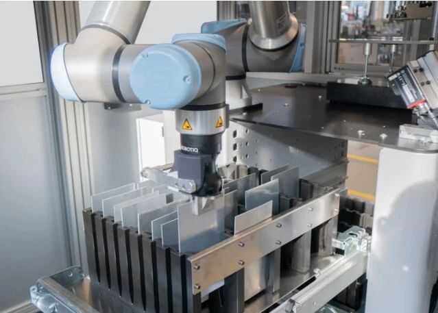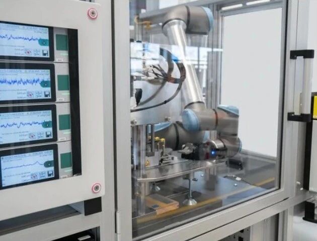 自动化系统:搭载含工件存储功能的协作机器人(Mahr 自动上料机)。其可自动从料仓取出铝板样品,扫描二维码完成识别与记录,再将样品送入测量装置;随后对样品正反面进行测量,并依据结果判定合格与否。
