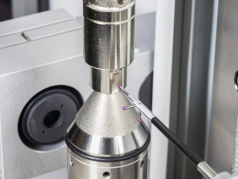 可选配一个带感应测头的接触测量系统,例如,用于测量径向或轴向跳动。该测量设备已根据光学测量系统进行校准,所以它可以结合执行接触和光学测量任务。
